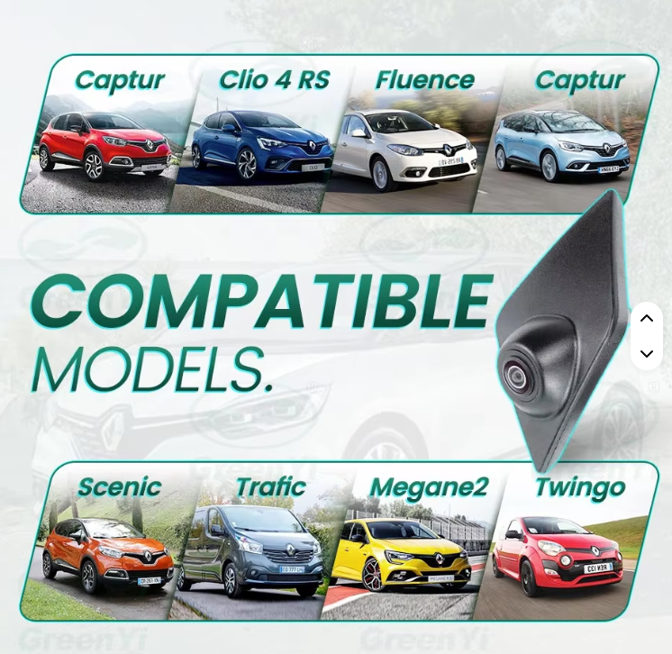 Cámara frontal diseñada específicamente para vehículos Renault. Ofrece un ángulo de visión de 150° que proporciona una cobertura amplia del área frontal, permitiendo una visualización clara del logo y los detalles del frente del automóvil. Conexión tipo RCA para instalación sencilla y compatible con sistemas de video existentes. Ideal para aplicaciones de seguridad, monitoreo y documentación visual del vehículo. Captura de imagen nítida en diversas condiciones de iluminación.
