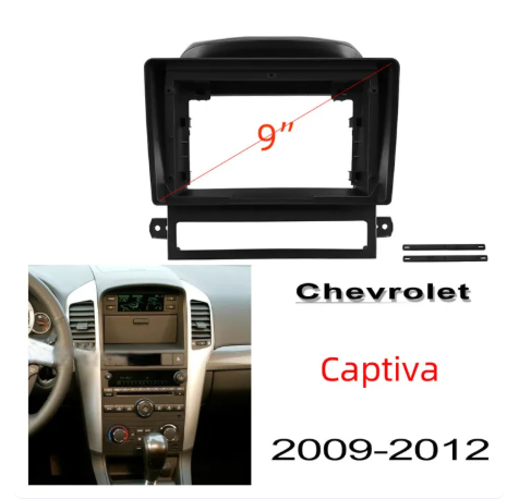 Adaptador de marco de 9 pulgadas diseñado específicamente para chevrolet Captiva 2009-2012. Facilita la instalación de sistemas multimedia modernos manteniendo la compatibilidad con el tablero original del vehículo.