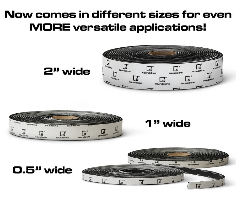 Skins de sonido | Kit de amortiguación de sonido de cinta de espuma de celda cerrada Cinta de espuma acústica | Cinta SSK | Espuma de caucho de celda cerrada, 4 rollos (2", 1", 0.5" de ancho)