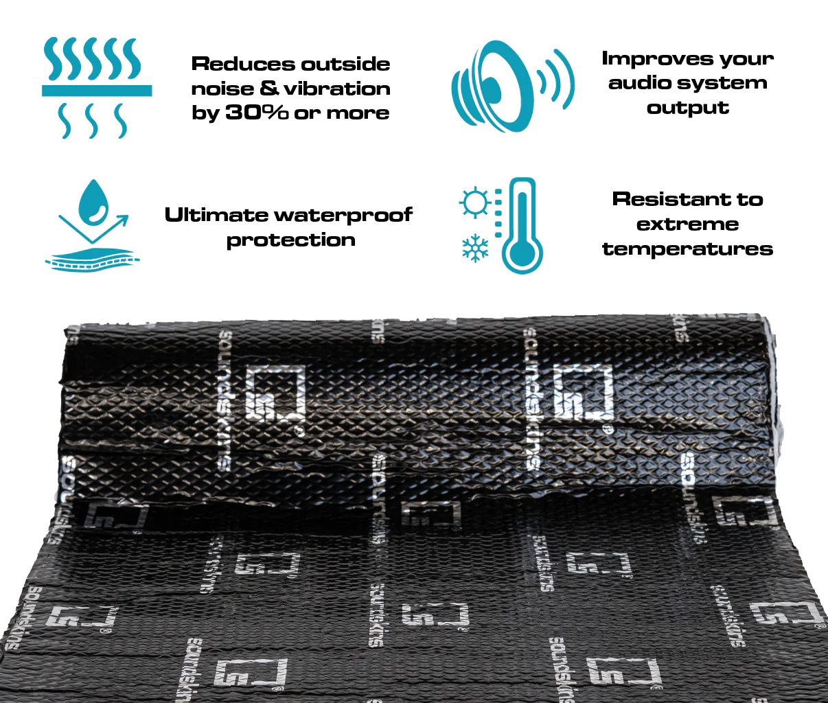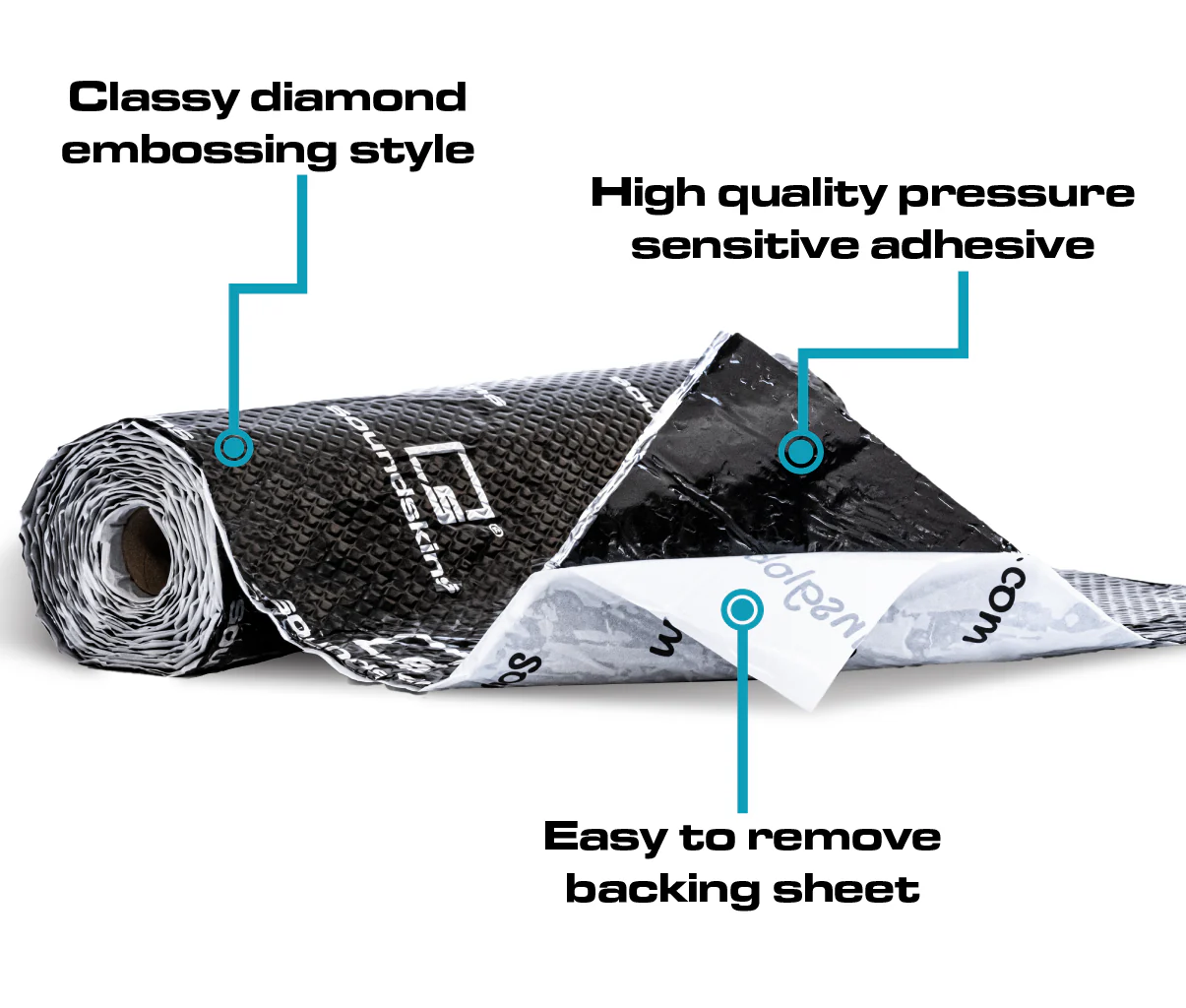 Rollo de material acustico para insonorizacion SoundSkins | de doble capa con amortiguación de sonido | SSK-CLASSICNEGRO | Lámina con relieve de diamante y butilo de caucho puro